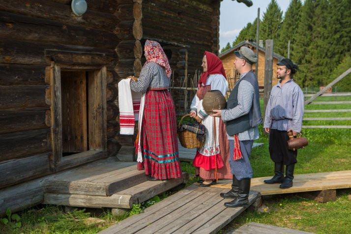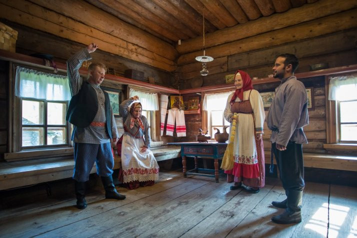 The program includes: telling the story of the traditions and superstitions associated with construction of a new house; acquaintance with a farmer’s family at the time of their moving to a new house; exploration of the new housing, i.e., rolling the bread, money-spreading, gifting the new occupants, treating with kvass (mildly alcoholic drink made of fermented rye bread, yeast or berries) and bier.