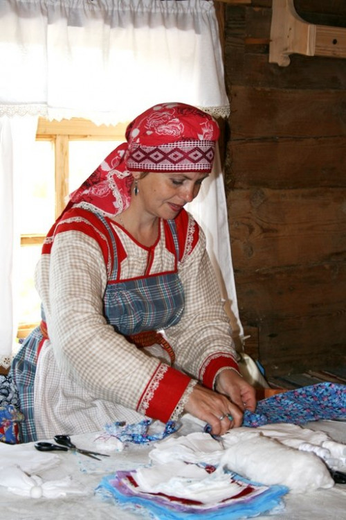 Patchwork dolls were there in every village house. They were not only for playing, but also for rituals. Vepsian dolls had been found in the Babaevo and Vytegra areas of the Vologda region. They were made of fragments of old mother’ things without using any scissors and needles, so that a child’s life would have no “cuts;” ash could be used for their filling. The following types of dolls were typical for the Russian North: stolbushka (picket-doll), zernushka (grain doll), rvanka (wrench doll); they served as amulets protecting from malign forces and bringing wealth and good luck. Following the traditions, you can make your own one.