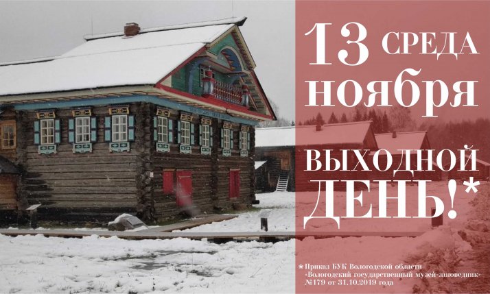 Изменения режима работы музея "Семёнково" осуществлено на основании Приказа БУК Вологодской области "Вологодский государственный музей-заповедник" №179 от 31.10.2019 года.
