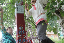 Время за игрой и интересными занятиями пролетело незаметно. И вот уже команда проекта в Тотьме устанавливает новый арт-объект: особенный, отличный от других.