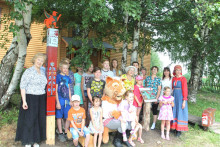 А дети при помощи разноцветных мелков и трафаретов проложили дорогу от парка, где установили арт-объект, до здания музея. Теперь грифоны и львы, сирины и гарцующие кони сопровождают гостей в музей и напоминают о тех временах, когда люди верили в реальность существования мифических существ и привлекали их на службу покоя домашнего очага, о чём свидетельствуют памятники народной живописи.