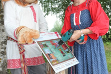 Завершающим сюжетом церемонии открытия арт-объекта на тотемской земле стало скрепление творческого союза между партнёрами проекта. Директор Тотемского музейного объединения Новосёлов Алексей Михайлович, автор проекта, руководитель музея "Семёнково" - Киршина Наталья Олеговна и научный консультант, заведующий художественным отделом Вологодского музея-заповедника - Глебова Ангелина Аркадьевна установили информационную панель с картой туристического маршрута "Дорогами грифонов и райских кущ", вкрутив последние винтики в успех начинания.