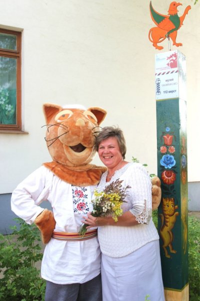 Музейный Арт-десант высадился у здания Харовского историко-художественного музея. Здесь команду проекта «Дорогами грифонов и райских кущ» ожидала работа. Дружно взявшись за дело, справились со всеми испытаниями. И вот сказочный грифон уже парит над Харовской землёй, а услужливые львы, написанные рукой мастера народных промыслов Вологодской области - Петровой Галиной Анатольевной, зорко глядят во все четыре стороны. Кот, увидев, как удачно вписался арт-объект в зелёную зону у входа в музей, от удовольствия сказал: «Мяу!». И с ним согласилась начальник управления культуры Харовского района Рябкова Наталья Николаевна.