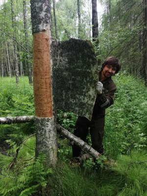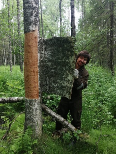 В начале июля «береста бежит». Так говорили крестьяне о времени, когда береста с лёгкостью отделяется от луба. В этой связи команда музея в соответствии с договорённостью с ООО «Вологодский лес» выдвинулась на заготовку материала. Музейщикам в распоряжение была выделена делянка в лесу, предназначенная под скорую вырубку. В течение дня мужчины занимались непривычным для себя делом: на уровне высоты поднятой руки делали вертикальный надрез ножом вниз и аккуратно снимали один пласт коры за другим. Лишь стоило приложить немного терпения и усилий, как широкая лента бересты оставалась в руках. Так удалось обеспечить музей материалом в достаточном количестве для ремонта кровель нескольких амбаров и проведения мастер-классов по берестоплетению на год вперёд.