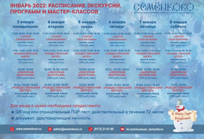 Друзья! Пожалуйста, обратите внимание, билеты на экскурсии, мастер-классы и программы "Рождественский вертеп" приобретаются только ОНЛАЙН.