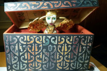 Руководитель музея Наталья Киршина предложила перелистать дневник проекта, а Валерий Малиновский, представляющий малый бизнес, презентовал тематический сувенирный ряд. Кружки и брелки, блокноты и шейные платки, яркие открытки с росписями и магниты пришлись по вкусу собравшимся. Теперь любой желающий, отправившийся в путешествие по маршруту "Дорогами грифонов и райских кущ", сможет не только сделать яркие фото у Арт-объектов, но и приобрести сувениры с росписями в подарок себе и друзьям.