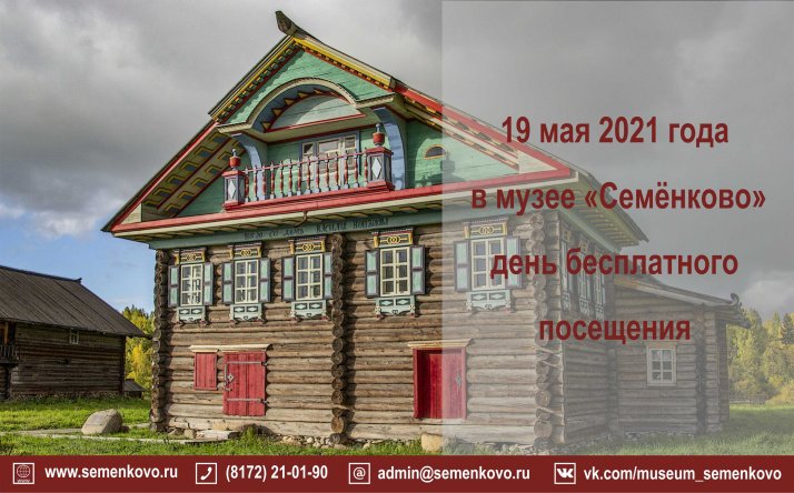 Сегодня, 19 мая 2021 года, в связи с празднованием Международного дня музеев, организовано бесплатное посещение музея "Семёнково" и экспозиций.