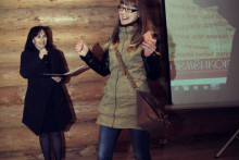 Приподнятое настроение всех было поддержано песней, написанной специально к встрече друзей! Слова, положенные на музыкальную композицию, широко известную в молодёжной среде как "Хали-Гали", хорошо передали дух и настрой происходящего: "Волонтёрство" - звучит смело, по плечу любое дело! Мы активны! Мы команда! Любим думать нестандартно!" Песня завела и добавила драйва встрече. Каждый старался внести свой вклад в её исполнение, подхватывая меняющиеся на экране слова и выводя ритмический рисунок. Возможно, группа "Леприконсы" и упрекнула бы нас в отсутствии чистоты звучания, но, наверняка, позавидовала бы громкости и дружности нашего хора.