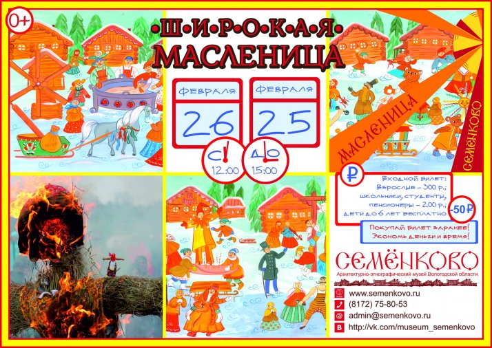 Стоит произнести слово "масленица", и невольно через всё лицо расползается широкая улыбка. Приезжайте 25 и 26 февраля в музей "Семёнково" пировать, веселиться, душою тешиться на раздольный праздник "Широкая масленица"!