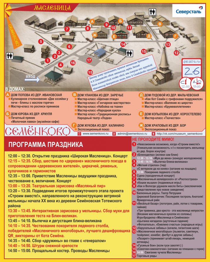 Программа праздника "Широкая Масленица" на 26 февраля 2017 года (Воскресенье)