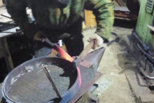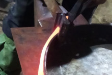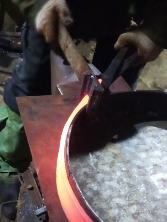 Приступив к ответственному этапу работ, связанному с устройством механизма шатровой мельницы из деревни Старое Село Вологодского района музей обратился за помощью к известному кузнецу Александру Петрухичеву. Ему предстояло выковать по индивидуальному заказу, исходя из рекомендаций научно-проектной документации, хомуты для вертикального и горизонтального вала, а также скобы подшипника, цапфу, оголовки, жабки и, наконец, гвозди!