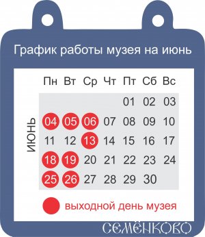 Обратите внимание, что музей "Семёнково" не работает 06 и 13 июня 2018 года.