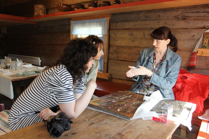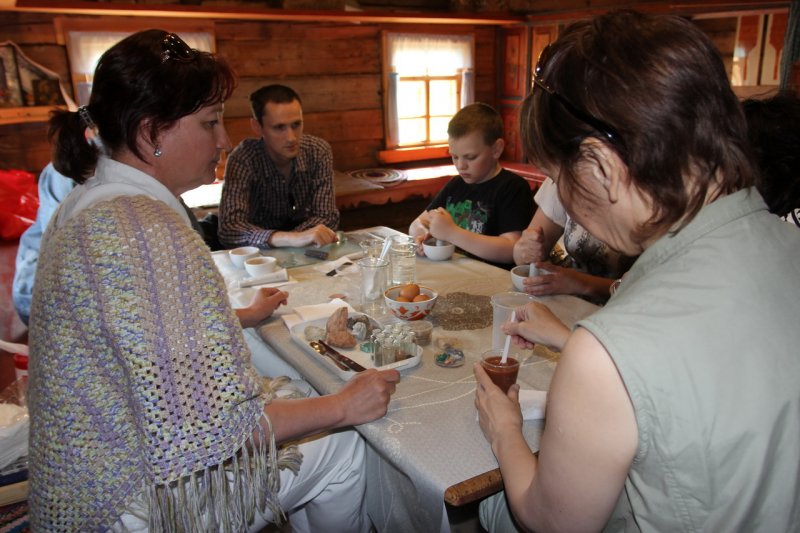Скучать на празднике не пришлось никому… Особой популярностью пользовалась экскурсионная программа «Приоткрывая двери в храм». Самые маленькие мастерили пасхальные открытки. Взрослые вспоминали историю происхождения иконы Спаса Нерукотворного и узнали много нового о минеральных красках, использовавшихся в иконописи, из уст научного сотрудника художественного отдела Вологодского музея-заповедника Лубенцовой Елены Викторовны. Желающие приложили некоторые усилия, чтобы изготовить коричневую краску из широко распространенного на Вологодчине минерала - охры.