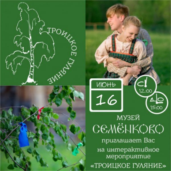 16 июня - летний праздник деревенской молодёжи «Троицкое гуляние»! В Троицын день музей «Семёнково» соберёт всех православных на водосвятный молебен, а после наполнится всеобщим весельем!
