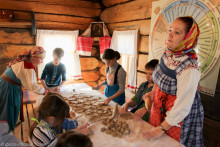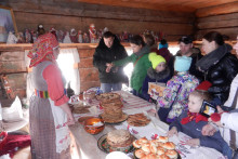 Гурманы остались под впечатлением от традиционной выпечки Тотемской земли. Ольга Николаевна Литвинова – руководитель центра народной культуры "Морошка" Тотемского музейного объединения удивляла всех сичениками с капустой и картофелем, саломатом, драчёной, блинами с луково-рыбным припеком. А семейная студия "Светица" учила желающих выпекать шаньги. Не случайно говорят: "Масленица - объедуха, обжируха, деньгам приберуха".