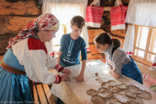 Другие же с усердием подготавливали зерно к помолу: толкли в ступе, провеивали, работали на ручных жерновах и, конечно, пекли блины. Многие стали свидетелем неожиданного Кулинарного столкновения, когда на одной кухне встретились две хозяйки: одна из прошлого, другая - наша современница. Каждый смог оценить вкус традиционных блюд из зерна и угоститься овсяным киселём.