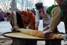 Около 7 тысяч посетителей поспешили в музей, чтобы стать свидетелями необычного представления. Не секрет, пять лет назад в музее родилась идея выпечки Блина-великана. С тех пор интрига - удастся ли перевернуть 2-х метровый блин – волнует всех.