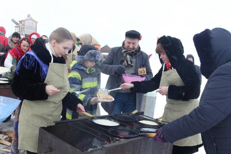 То, что первое блюдо на масленицу блины, знают все. Но умеют ли молодые жёны их выпекать - вопрос. Именно это и проверяли устроители программы в первом конкурсе «Хозяйка у печи – блины на стол мечи». Молодухи не растерялись и на предложение замесить тесто - быстро справились с ним. Ни холодный колючий ветер, ни любопытные взгляды посетителей музея не сломили энтузиазм участниц. И вот уже на открытом огне жарятся первые блины на радость мужьям и не только им.
