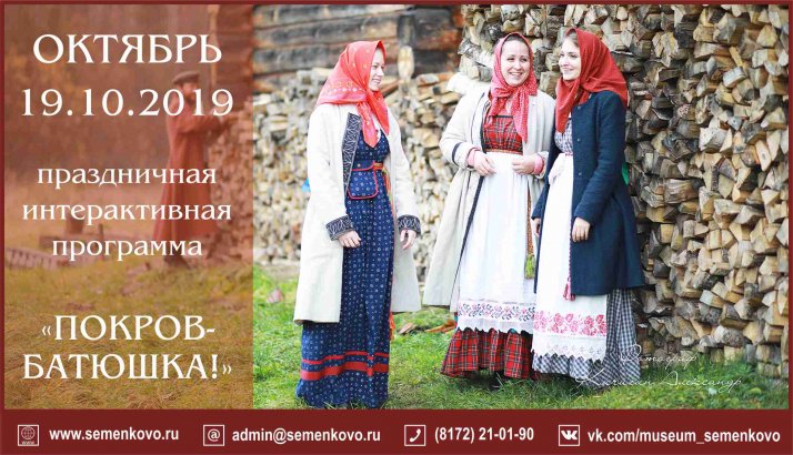 19 октября 2019 года с 12.00 часов музей «Семёнково» приглашает вологжан и гостей города на праздничную интерактивную программу «Покров- Батюшка!»