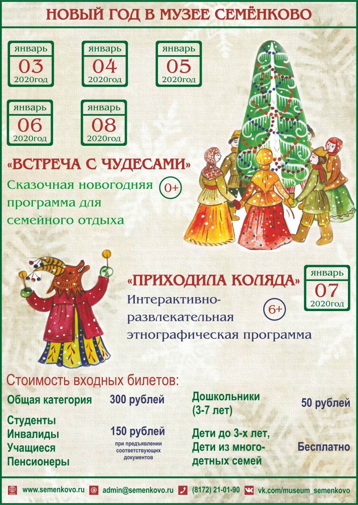 3, 4, 5, 6 и 8 января 2020 года с 12 до 15 часов в музее "Семёнково" - «Встреча с чудесами»!