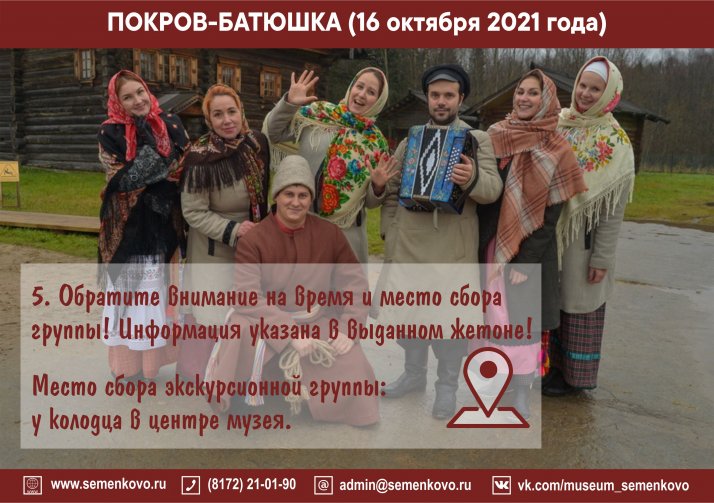5. Обратите внимание на время и место сбора группы! Информация указана в выданном жетоне!