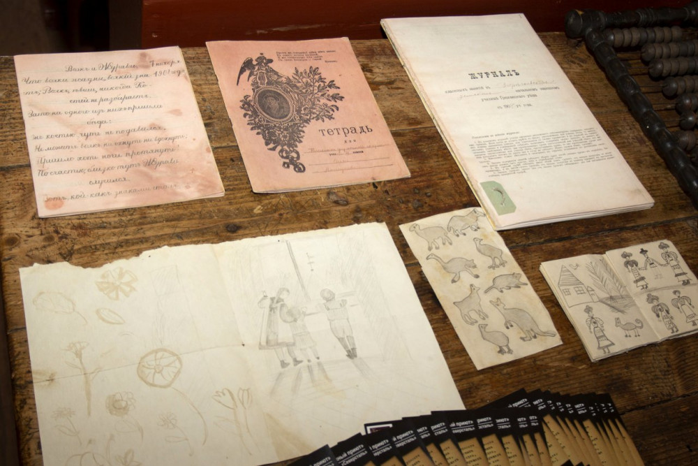 А со стороны улицы при этом не видно, что окно имеет тонировку, оно воспринимается также, как и прежде. Важную роль мы отвели световым решениями и акцентам. Зритель видит мерцающий в лампадке огонь, высветляющий лики святых в красном углу, замечает на столе горящий фонарь «летучая мышь», освещающий рабочее место. В приоткрытую дверцу печки видно яркое пламя, создающее ощущение тепла и деревенского уюта. Свет руководит восприятием информации, он синхронизирован с аудиогидом и подчёркивает по ходу рассказа наиболее важное и существенное. Привлекают внимание скульптуры детей и котёнка. Их создали для нас специалисты Уральского института музейных проектов. Экспозиция получилась уютной, камерной. Уверены, она будет интересна широкому кругу людей и раскроет тему послеурочной жизни школьников и их социальной поддержки, роли ночлежных приютов в решении вопроса обеспечения грамотности населения в Вологодской губерниив к. XIX – н. XX века".