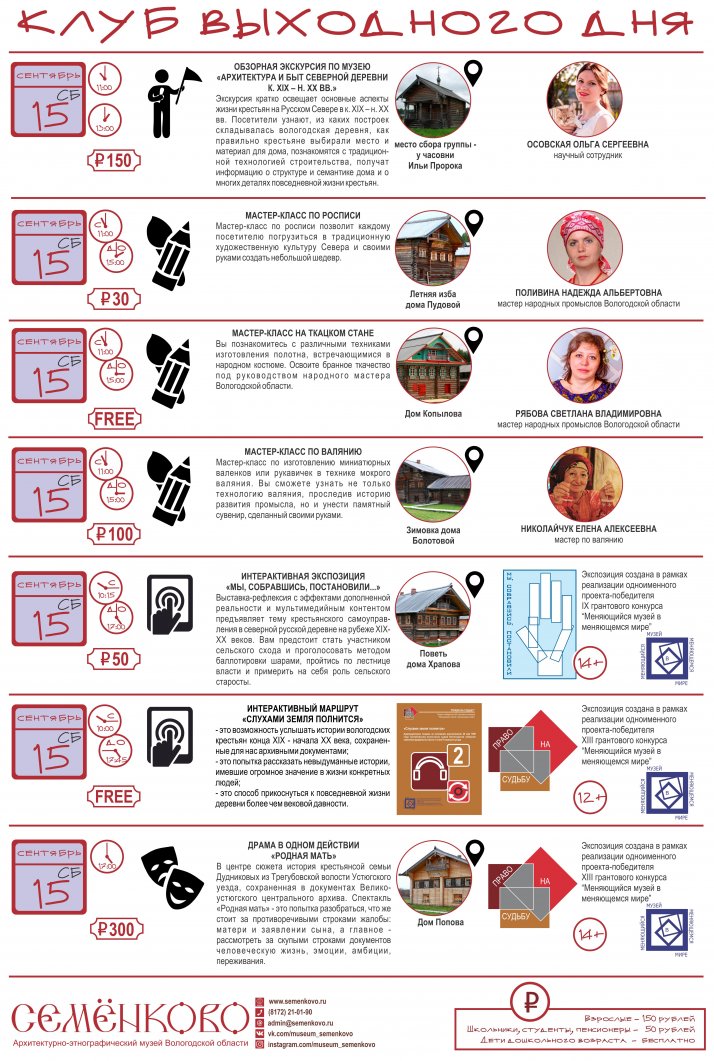 Программа "Клуба выходного дня" на 15 сентября 2018 года