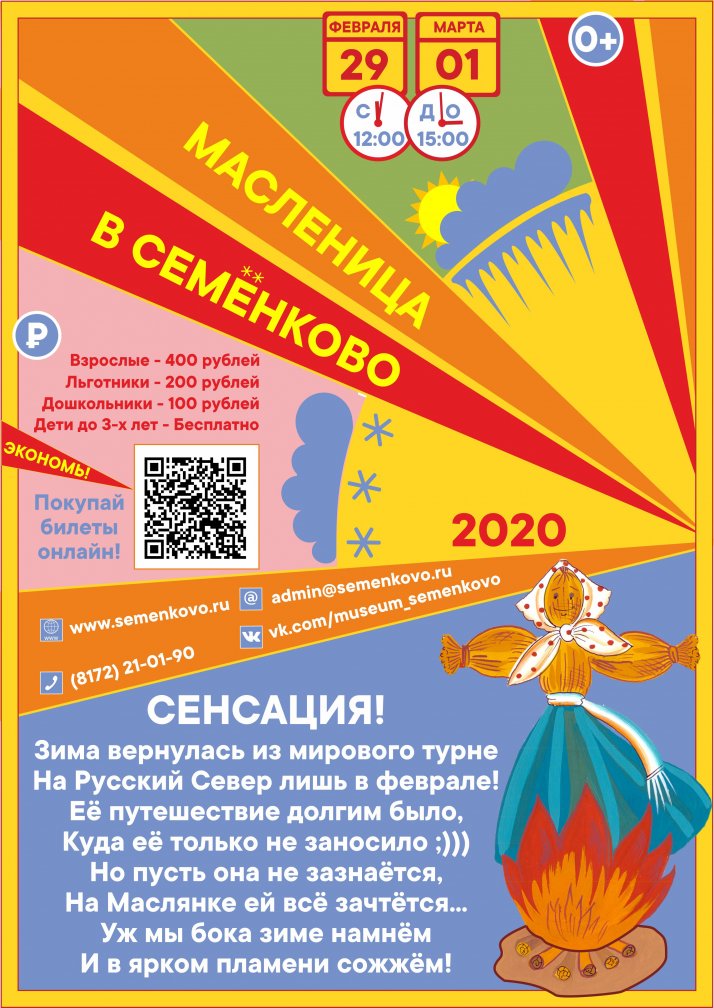 Впереди немало праздников. Мы всегда находимся в поиске оригинального подарка для родных, близких, друзей. Возможно, билеты на «Масленицу в Семёнково» станут хорошим решением этой проблемы. Воспользуйтесь указанной ссылкой и беспрепятственный вход на праздник будет обеспечен!