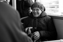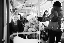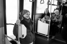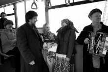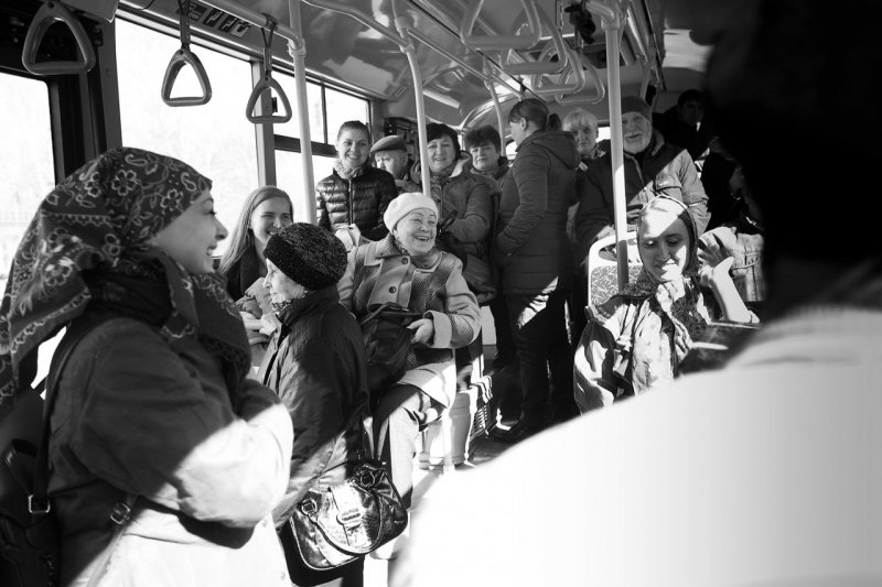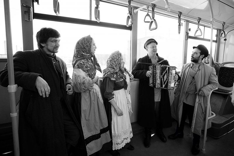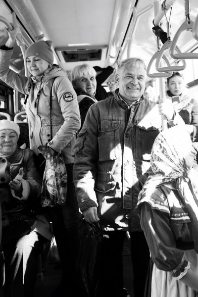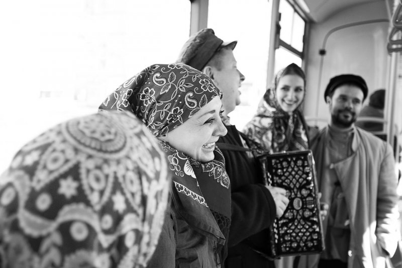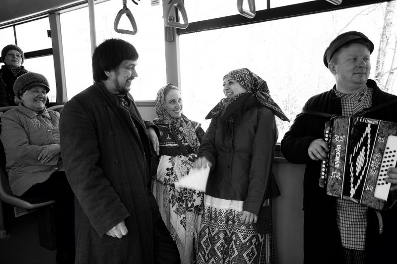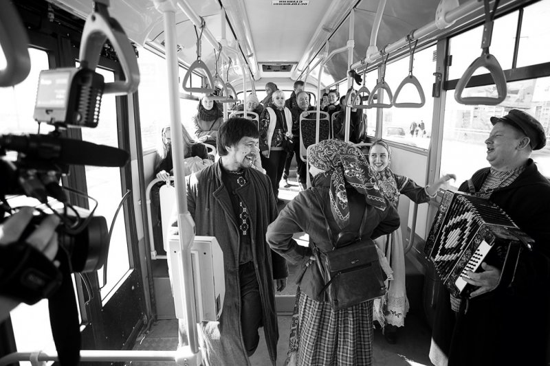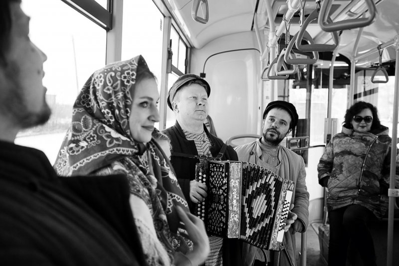 "…Да и могут ли фото рассказать о той атмосфере, что царила в автобусе. Когда весь автобус подпевал ребятам, прихлопывая в ладоши в такт. Кто-то даже выходил плясать! А одна сударыня просто не стала выходить на своей остановке, сказав: "Поеду с вами кататься!". А другая, взяв меня за руку, просила: " Девушка, я тоже частушки знаю, можно спою?" – Галина Смирнова.