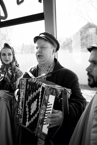 11 апреля в 10.30 утра в городе Вологда стартовал необычный рейс. «Поющий автобус» сделал круг по маршруту «Дальняя - ВПЗ». Пассажиры, стоя в ожидании автобуса на остановках и перебирая в голове планы на день, вдруг оживали, когда из открывающихся дверей транспорта раздавались задиристые частушки под весёлые наигрыши гармони. Любопытство брало верх, и вот они уже в автобусе с сияющими улыбками на лицах…