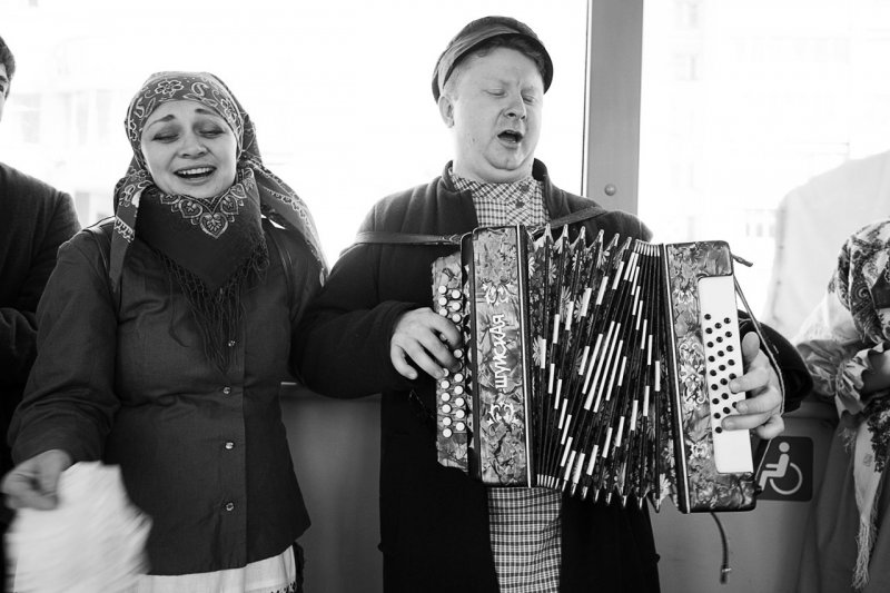 Когда люди счастливы, они поют, и это настроение передаётся другим. Народная песня, прошедшая испытание временем, это лучшее лекарство от весенней хандры и уныния. Частушки под гармошку, волочебные песни и другие, в ответ на раздающиеся просьбы пассажиров, исполнили участники Фольклорно-этнографического театра музея «Семёнково». И не прогадали…