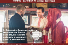 Уважаемые посетители! Приглашаем вас 19 октября в 12 часов на праздничную этнографическую программу «Покров - Батюшка»!