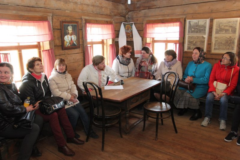 Они посетили созданное в 2016 году игровое пространство Дома мастеров, повстречались с "жителями" исторической деревни, перенесясь в прошлое на сто лет назад. В торговой лавке дома Копылова застали за работой Михайла Васильевича Копылова, познакомились с его сыном, женившемся сразу после возвращения из рекрутов, узнали от хозяйки, расторопной Маремьянихи, о желании оклеить избу обоями. Через судьбу конкретной семьи музейщики познакомились с историей дома и проектом "Сохраним русский дом на Русском Севере". Этим путешествие во времени не ограничилось. Дальше гостей ждала встреча с маслоделом, суровый разговор с сельским старостой, повторительные курсы в сельской школе.