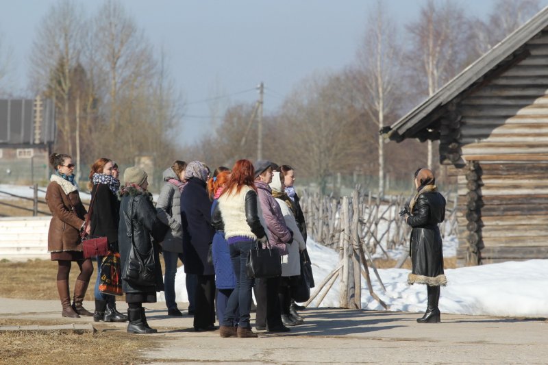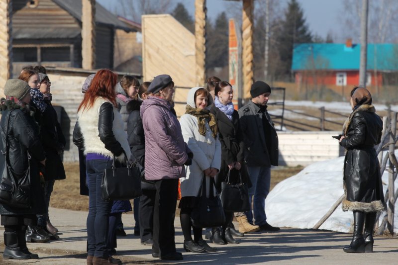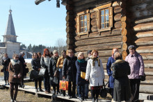 8 апреля в заключительный день работы Школы музейного мастерства музей «Семёнково» приветствовал гостей ярким весенним солнцем. На фоне прозрачной небесной лазури отлично читались силуэты деревянных построек.