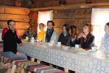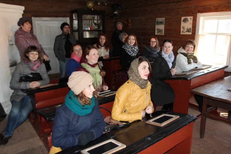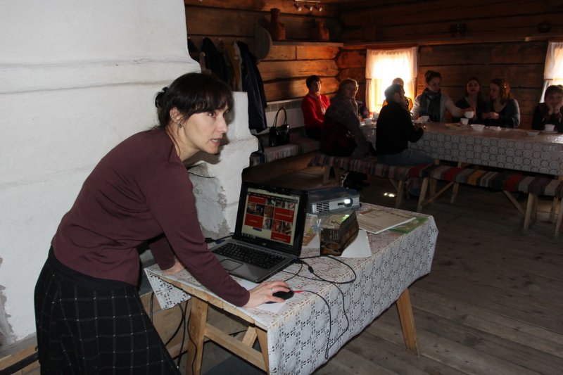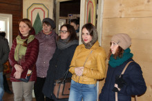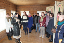 Для многих, из приехавших на методическую учёбу, это было первое знакомство с музеем «Семёнково». Наталья Киршина поведала о единственном на территории Вологодской области музее под открытым небом, истории его формирования, проблемах развития и ближайших перспективных планах. Особое внимание было заострено на результатах проекта «Строим вместе!» - прекрасном примере взаимодействия с бизнесом, итогом которого стала спасённая ветряная мельница из деревни Борок Тотемского района и строящаяся поблизости от неё ещё одна аэродинамическая конструкция. Гости посетили «Общественную квартиру», посидели за партами в «Сельской школе». Не обошли вниманием и дом Копылова из деревни Коростелёво.
