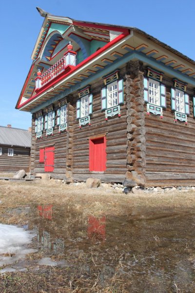 Музейные дома, как солдаты, выстроившиеся на парад, щеголяли деревянной резьбой, точёным балясником, предъявляя мощь строительной традиции, а их отражения купались в лужах талой воды, забавляя посетителей.
