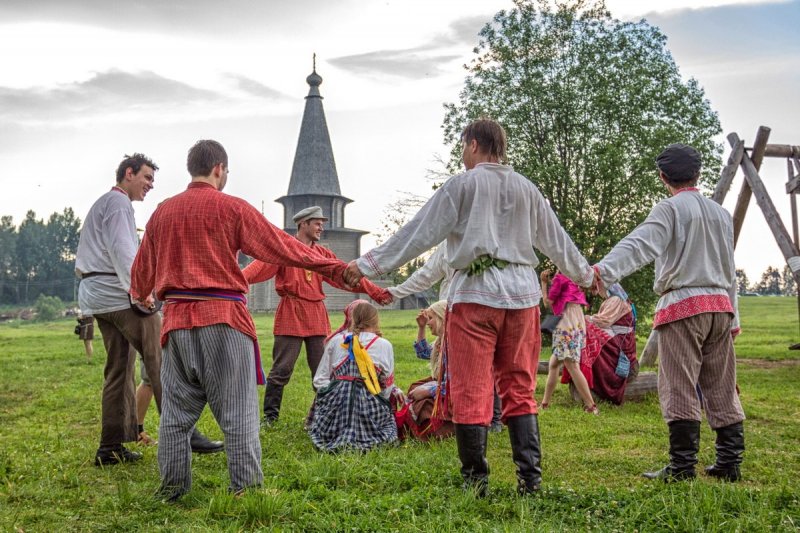 Яркой зеленью встретит музейная деревня дорогих гостей. Распахнутся врата Георгиевской церкви, и прольётся благозвучное пение в исполнении Хоровой академической капеллы им. В.М. Сергеева под руководством Назимовой Елены Львовны. В храме, празднично устланном травой, украшенном ветками берёзы и цветами, под стройное многоголосие утвердится торжество веры и силы духа.