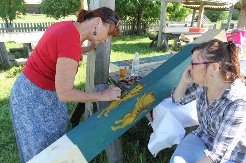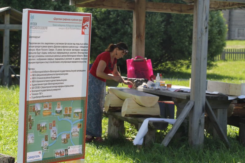 25 – 26 июня Арт-сессия получит развитие. Предстоит создать ещё четыре необычных указателя и расписные лавки, на которых путешественники смогут и отдохнуть, и задуматься о природе творчества и глубине традиции. В июле арт-объекты разъедутся в разные уголки Вологодчины: в Тотьму, Бабушкино, Харовск, Вологду. Их будет связывать единый туристский маршрут «Дорогами грифонов и райских кущ». А пока под открытым небом «Семёнково» раскинется арт-площадка.
