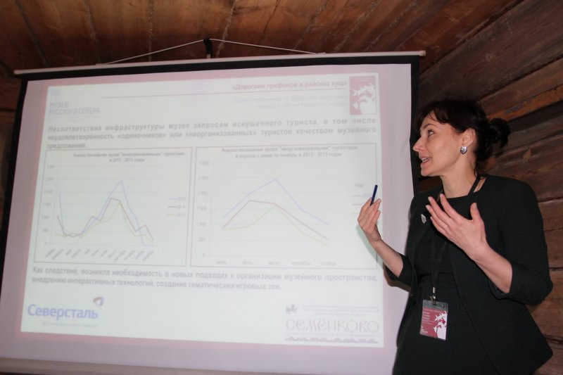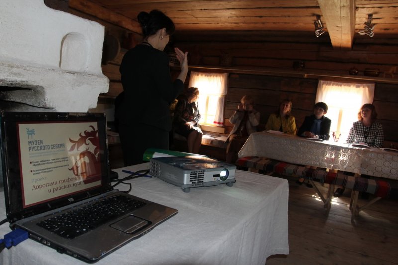 Автор проекта Наталья Киршина познакомила собравшихся с музеем под открытым небом как одной из площадок реализации проекта, где памятники народного искусства живут в естественной среде бытования, включены в контекст крестьянского жилья.