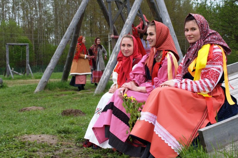 Вся деревня после обеда на улицу высыпала. На качелях народ!!! Парни девок качают, девки частушки поют. Смех! Веселье! Малые да и большие – все яйца по желобам катают: у кого дальше укатится, кто больше всех насбивает? Торговля кипит: кому лент, заколок, мыльца прикупить, а кому и так поглядеть.