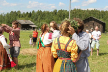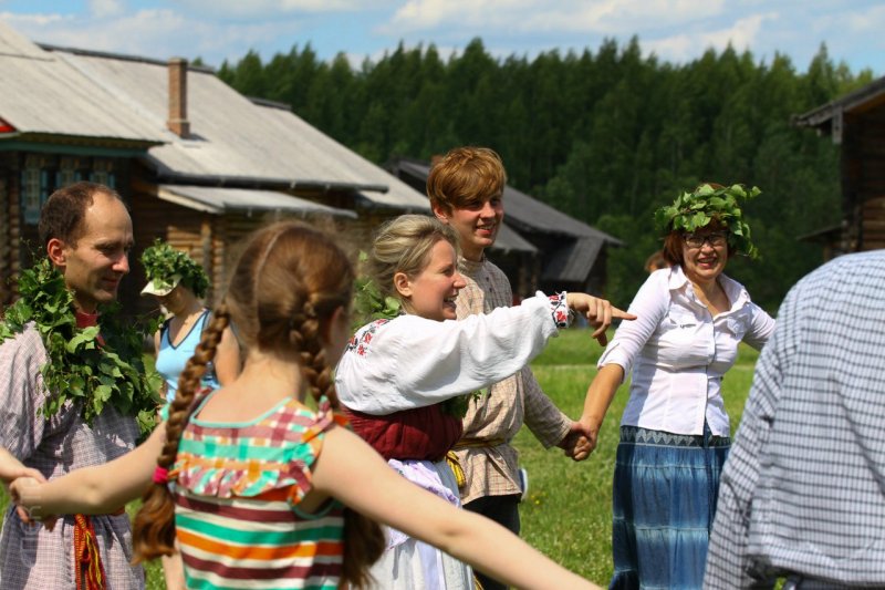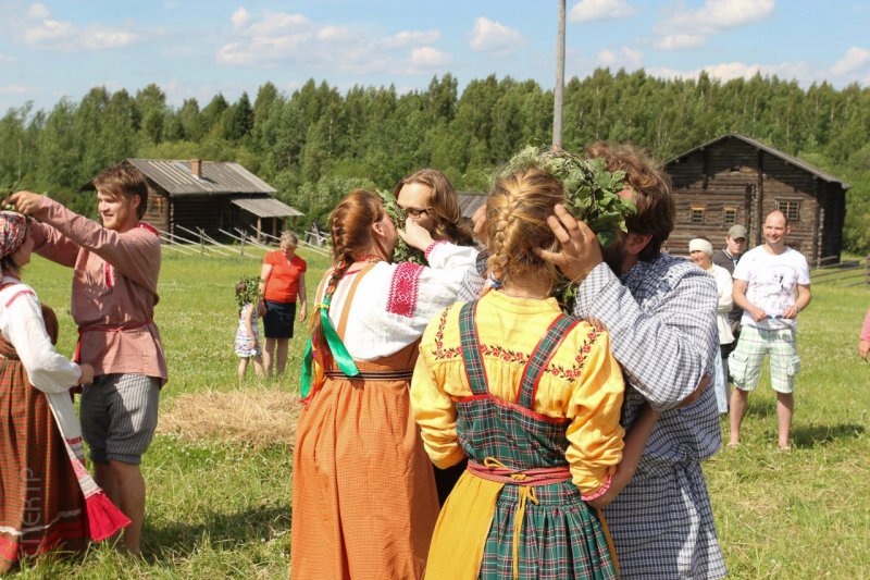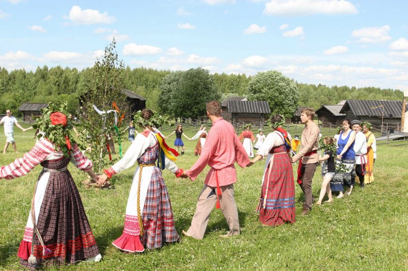 С самого утра деревня Семенково зажила приготовлениями к светлому празднику Троицы: девушки украшали дома веточками березы, наряжали лентами, парни готовили игры и увеселения для гостей, а бабоньки и мужики ставили братчину - топили самовар, варили яйца, делали угощение на всю деревню.