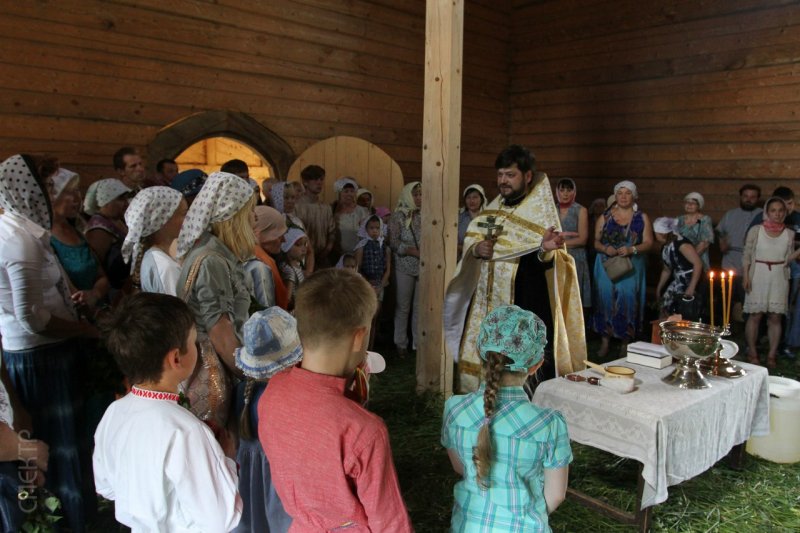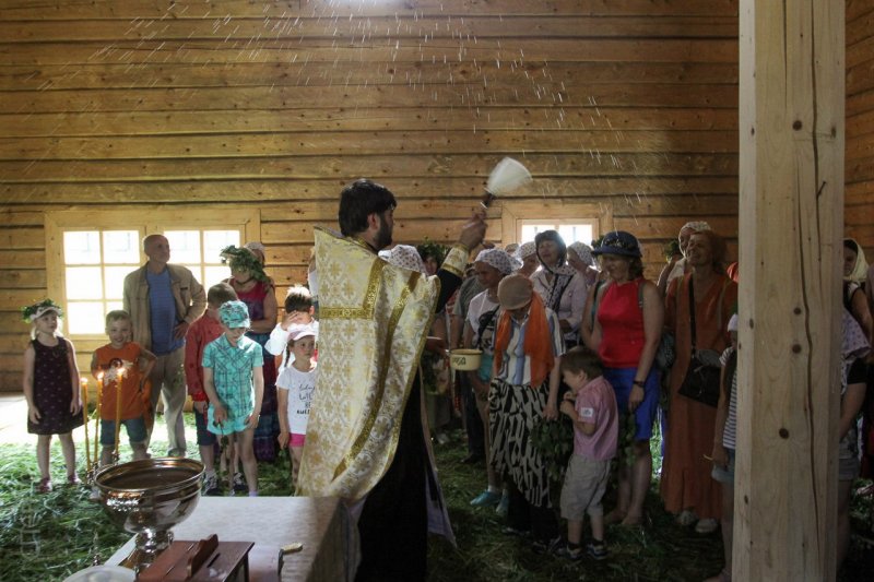 Троица – это большой Православный праздник. В 13.00 празднично украшенная травой и березами Георгиевская церковь встретила гостей. Иерей Михаил Болотский из церкви Антипия, епископ Пергамский, провел водосвятный молебен, где каждый мог послушать богослужение и осветить березовые веточки.