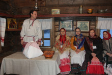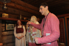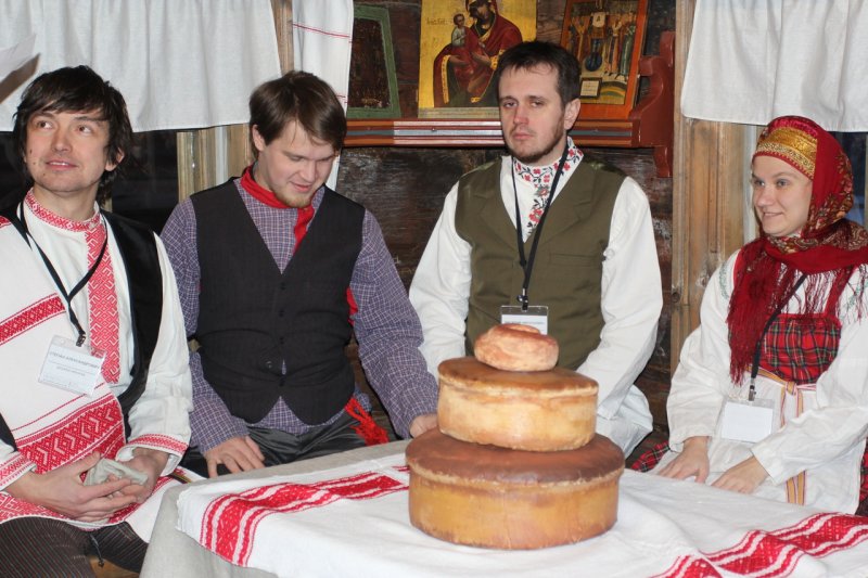 Мы уже успели убедиться, что все они незаурядные личности - яркие, талантливые, готовые учиться и экспериментировать. Поэтому, по сложившейся традиции, встреча началась с ролевой игры «Приезд женихов». Выбор материала не случаен, ведь именно в «зимний мясоед» (время между Рождественским и Великим постами) чаще всего в прежние времена совершались свадьбы. И вот наши друзья неожиданно для себя, в соответствии со жребием, разделились на сторону жениха и невесты. Кто-то стал тысяцким, а кому-то выпала роль родителей молодых...