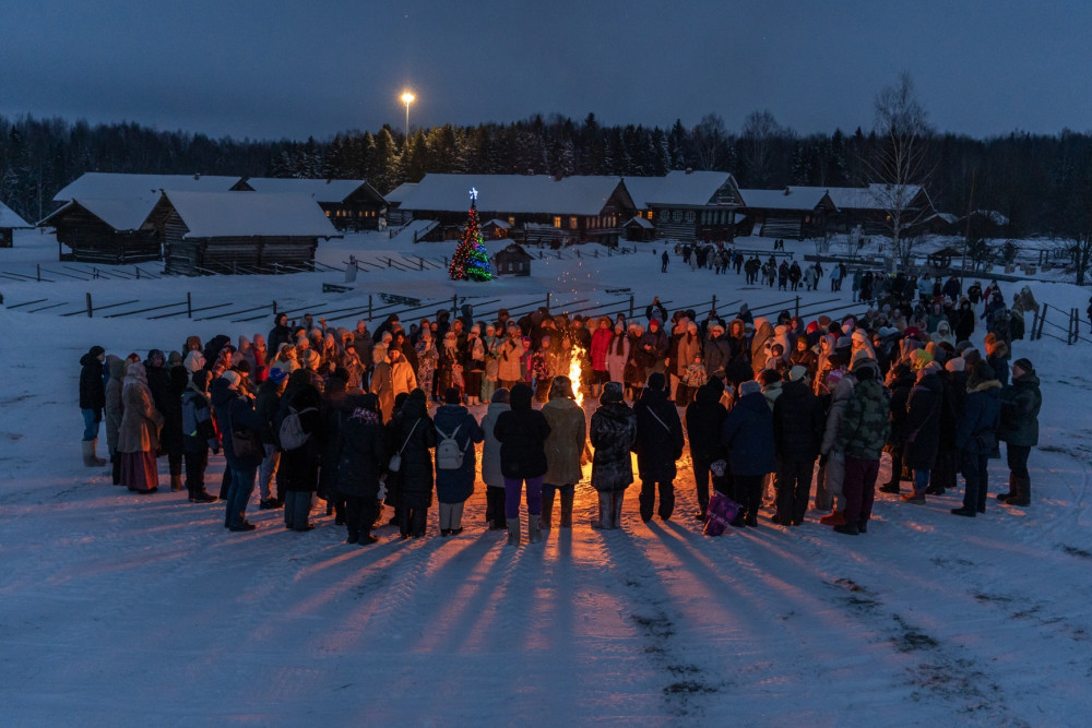 Более 400 посетителей приехали узнать о традициях празднования Нового года на Вологодчине. Вместе учили заклички, колядовали, собирали лучинки, разучивали святочный хоровод, кликали Мороза на «баской ужне», гадали, рядились, играли в целовальные игры на «Святочных игрищах», а после встретились у новогоднего костра, как было принято в деревнях среднего течения реки Сухоны в канун Нового года (13 января по н.ст.). Это обрядовое действие обозначало завершение одного и начало следующего календарного года.