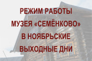 Уважаемые посетители! Музей «Семёнково» поздравляет вас с наступающим праздником - Днём народного единства и информирует о графике работы Музея в ноябрьские праздничные дни.