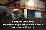 Уважаемые посетители! Обращаем ваше внимание, что сегодня, 8 августа 2024 года, музейное кафе «Молочная лавка» по техническим причинам работает до 16 часов.