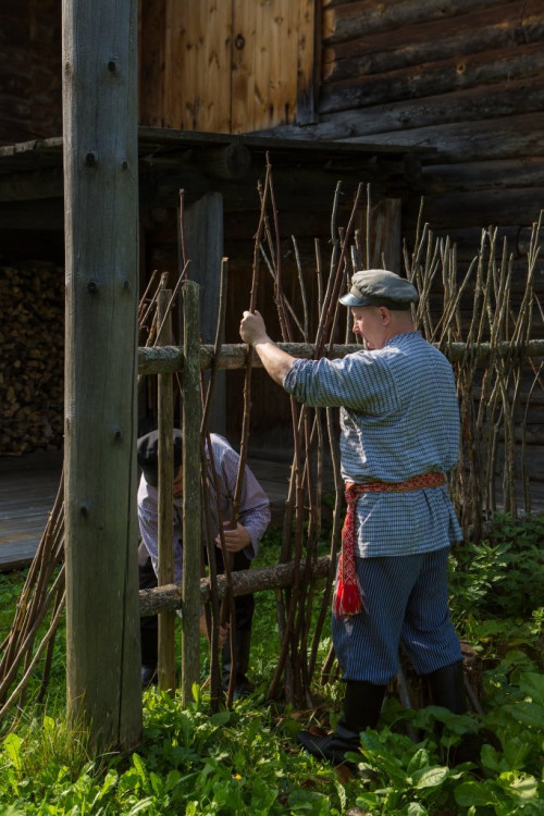 В программе: мастер-класс по изготовлению плетня, участие в традиционных для крестьянской усадьбы работах (в зависимости от сезона варьируются), блок народных игр.