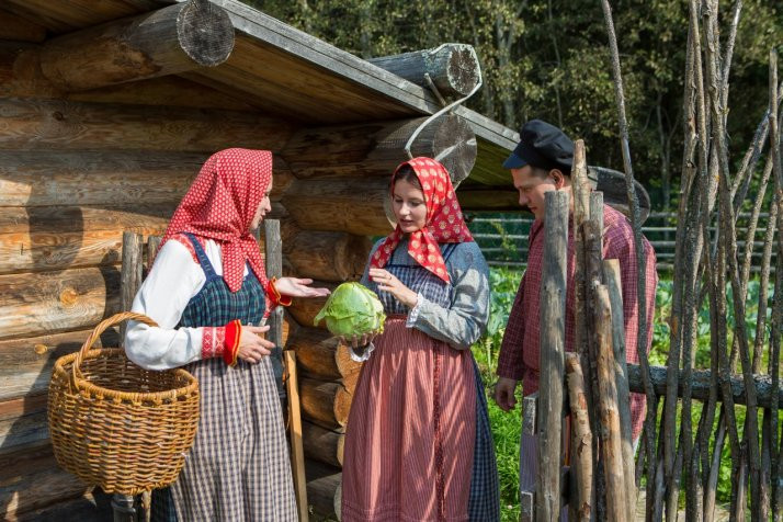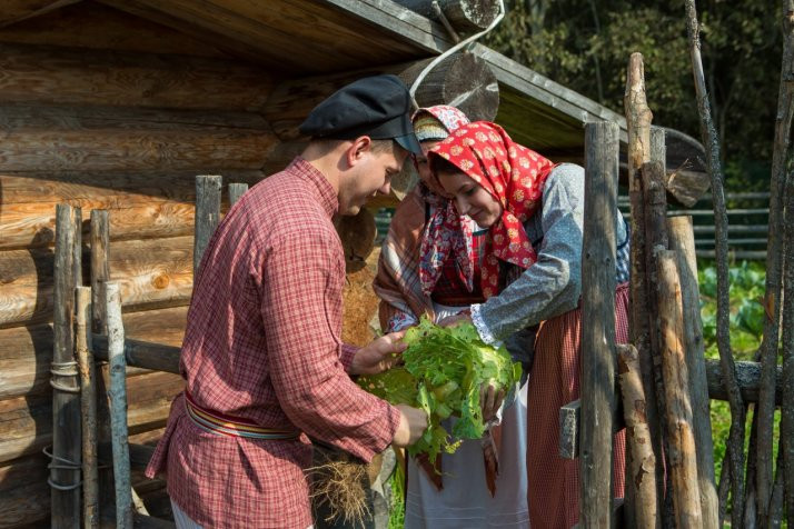 В программе: знакомство с традицией помочей на Русском Севере, угощение пареной репой, участие в коллективных видах работ (рубка, засолка капусты, колка дров, укладывание поленницы), подвижные игры.