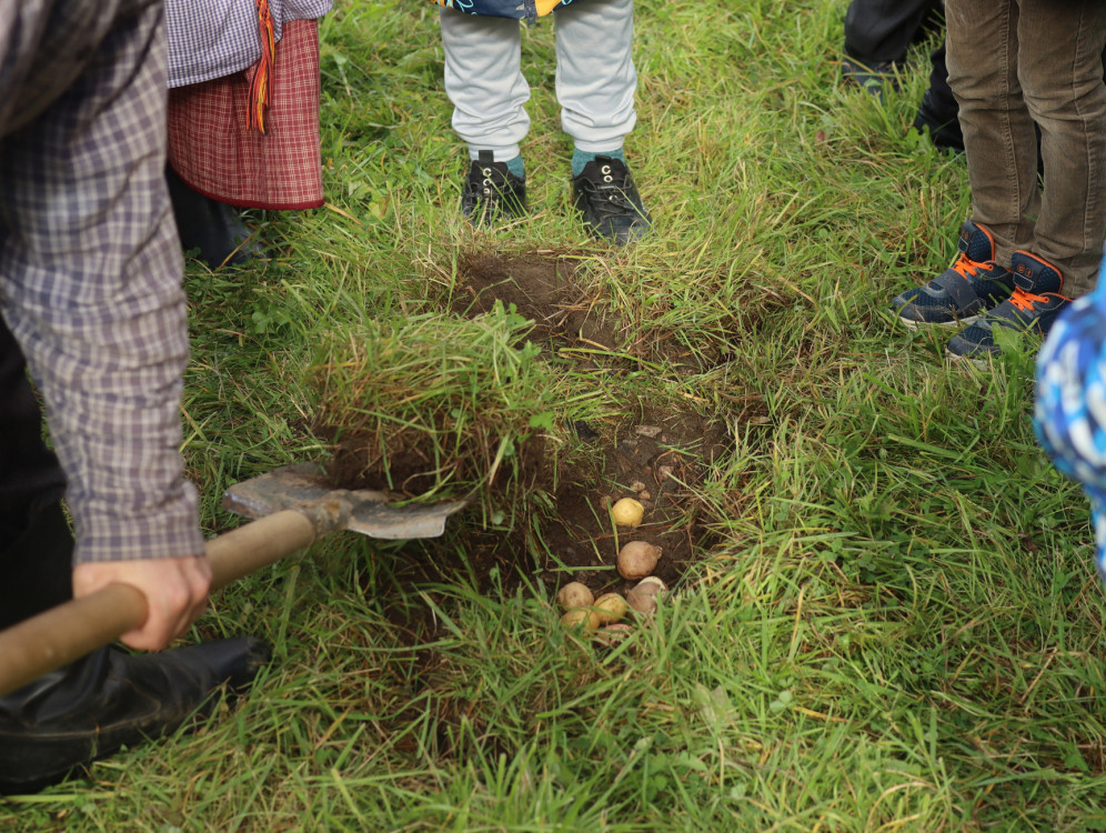 В программе: знакомство с обрядом «дожинки», участие в ритуале «завивания бороды», внос в избу последнего снопа, разучивание шуточных приговоров и причетов на похороны мух, вырезание гробиков из картофеля, «похороны» мух.