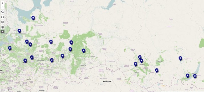 Интерактивная карта проекта «Деревянное кольцо России» создана на базовой платформе «OpenStreetMap», являющейся комплексом открытых данных, допустимых ее авторами к использованию для любых целей со ссылкой на авторские права «OpenStreetMap» и её участников.